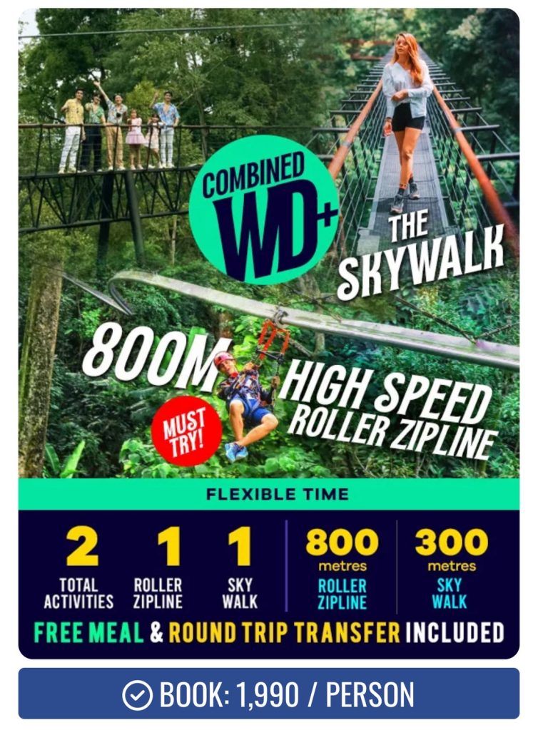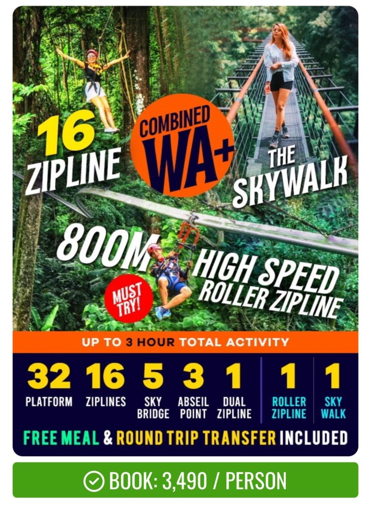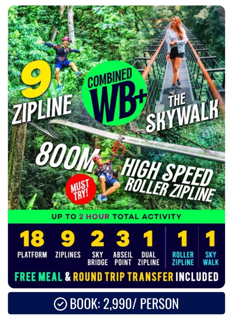 包含 32 個平台高空滑索、雲霄滑輪、天空步道,是最完整的叢林探險方案。